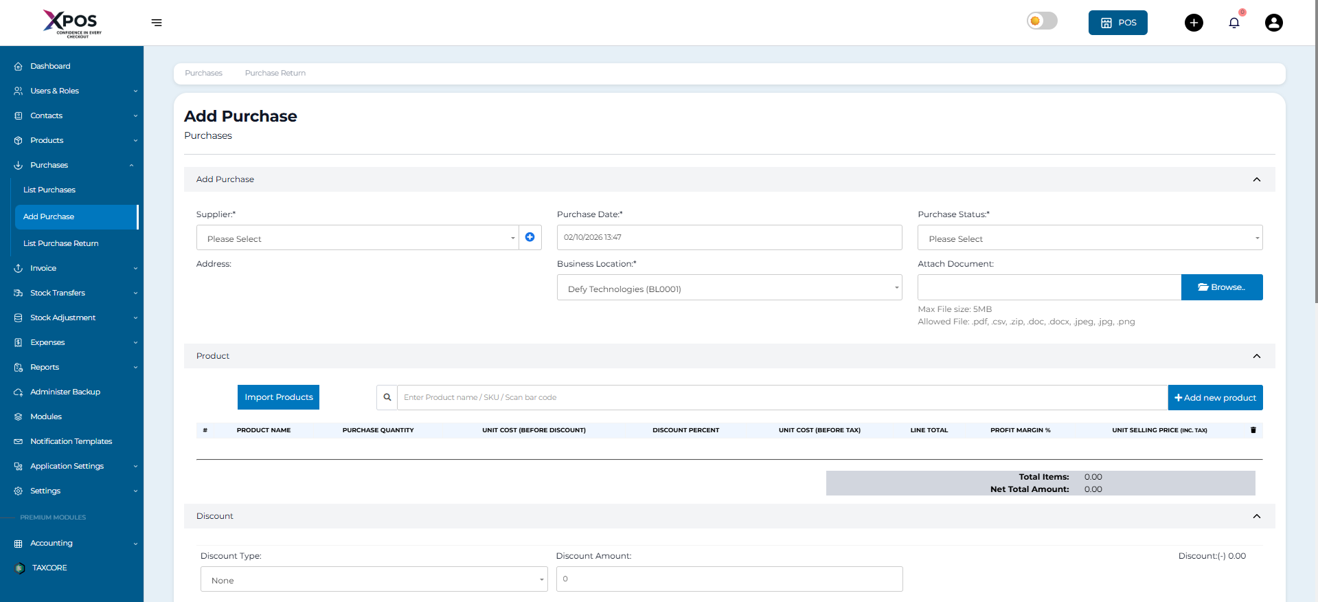 - A purchase invoice is automatically created for every purchase entry in the system.