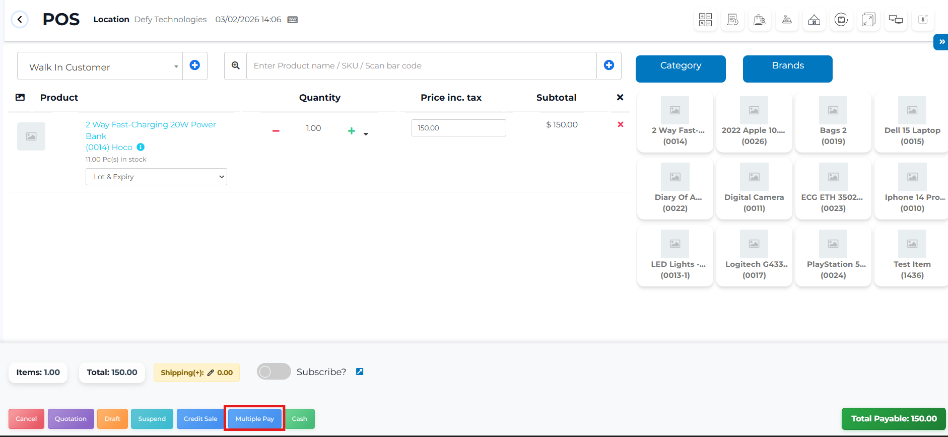 - Add Items to Sale: Add all items the customer wants to purchase to the invoice.